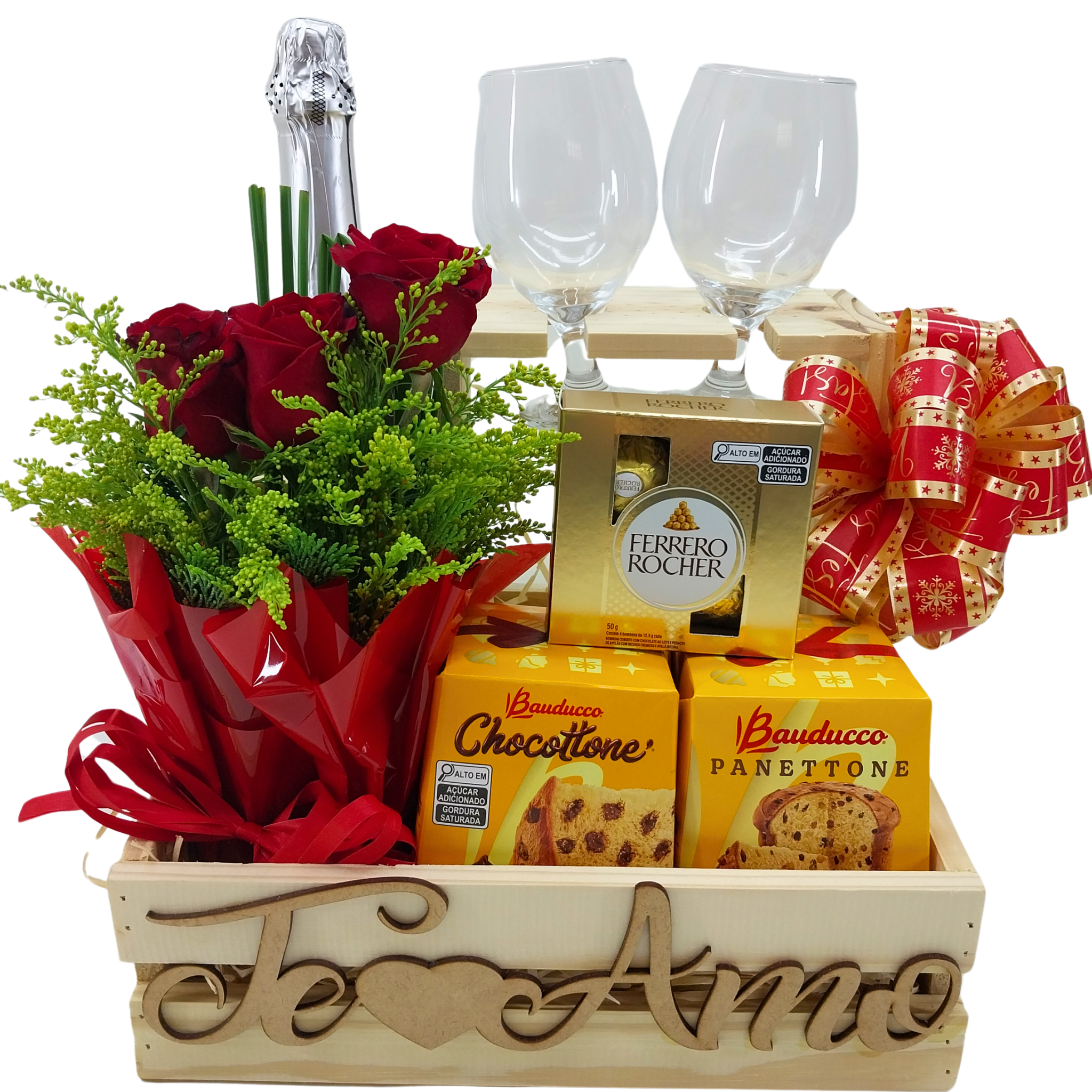 Baú Natal com Espumante e Taça